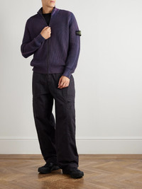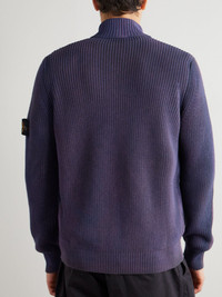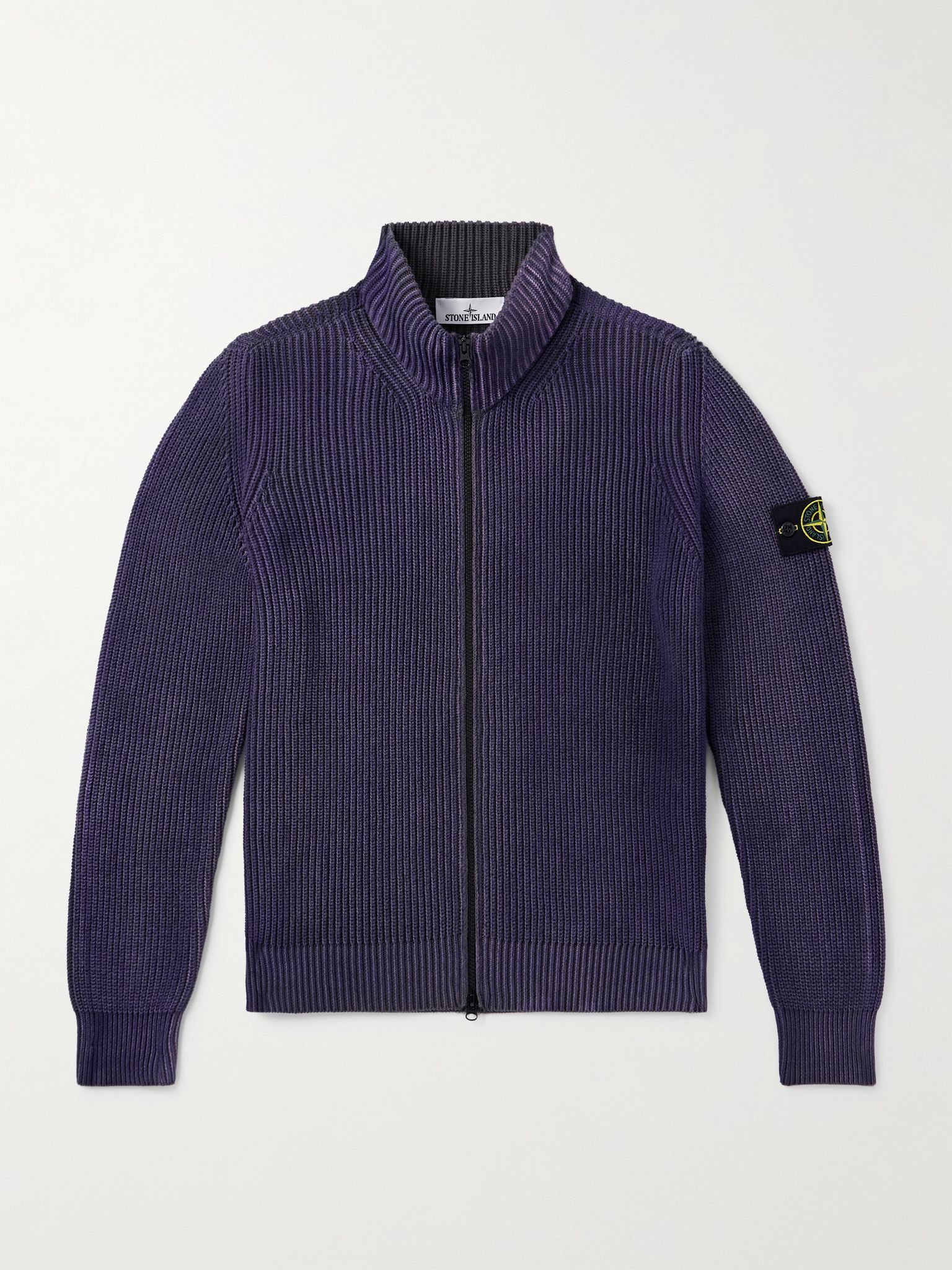 Logo-Appliquéd Ribbed Organic Cotton Zip-Up Sweater Purple