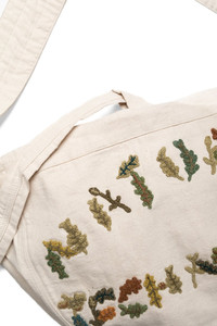 - Hand crochet applique leaves detailing - Loop-tie fastening - Internal compartments - 100% organic cotton - Made in India