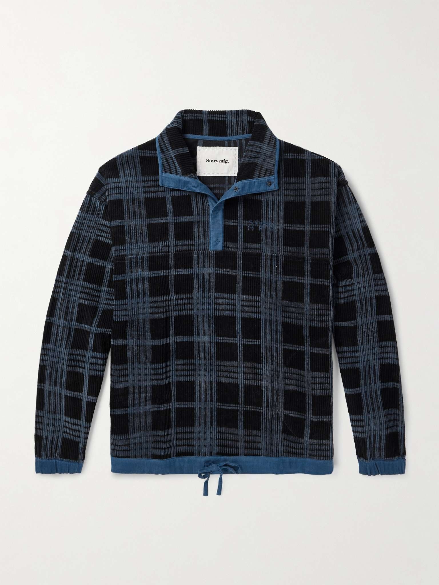 Saeed and Katy Al-Rubeyi founded Story Mfg. out of a shared passion for slow craft. Part of its SS24 collection dedicated to the label's niche enthusiasms, this 'Polite' sweatshirt is made from organic cotton-corduroy resist-dyed with a tonal-blue check. Wear it with the brand's baggy cargo trousers and mules. Lower Impact Materials. This product is made using at least 50% lower-impact materials or ingredients. Lower Impact Materials. This product is made using at least 50% lower-impact materials or ingredients. Find out more about our Consciously Crafted criteria here. Size & Fit - Fits true to size. Take your normal size - Designed for a slightly loose fit - Drawcord hem - Mid-weight, non-stretchy fabric - Model is shown wearing a M - Model measures: chest 38"/ 96cm, height 6'2"/ 188cm Details & Care - Tonal-blue organic cotton-corduroy - Snap fastenings - 100% organic cotton - Hand wash