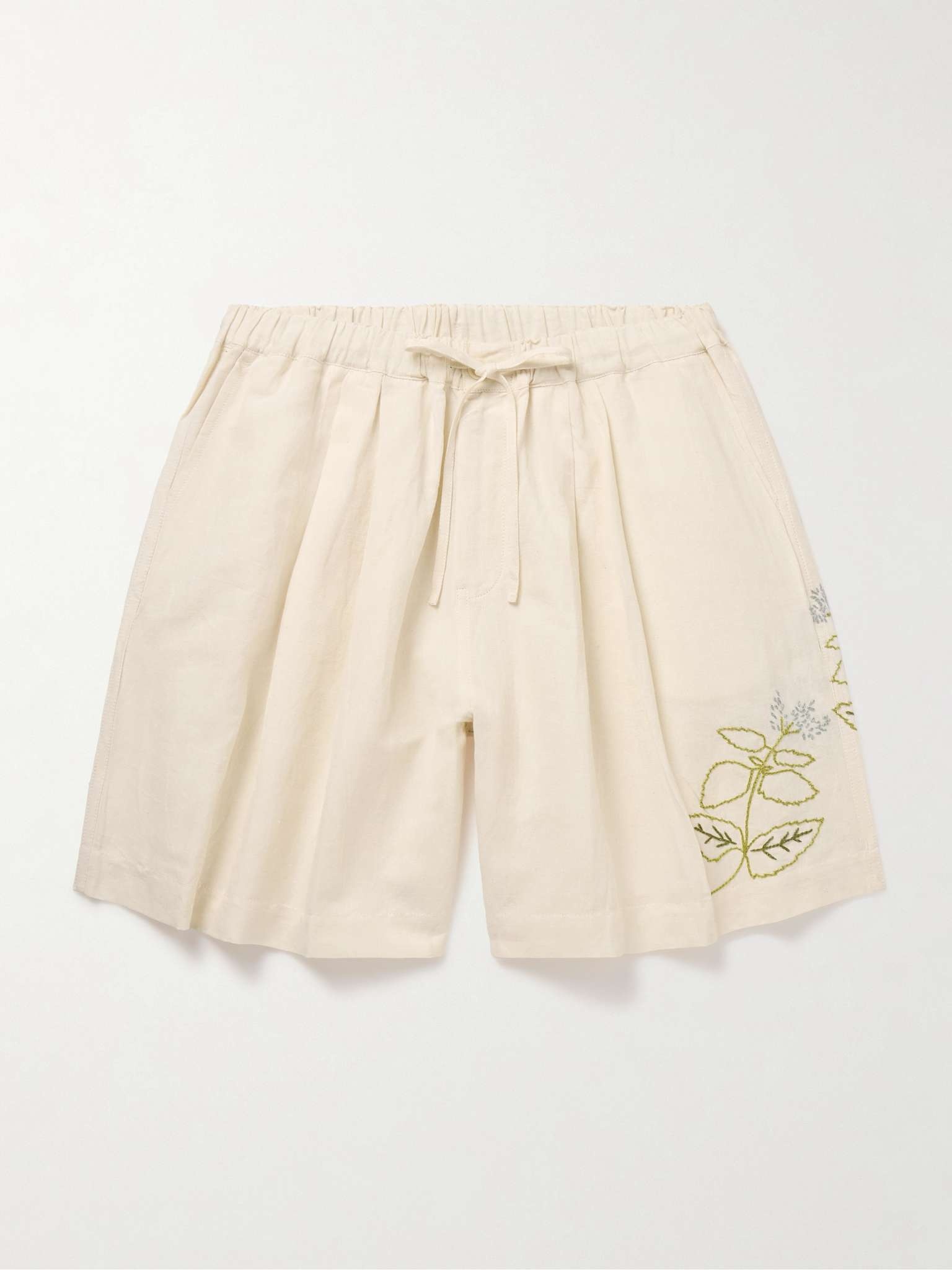 Bridge Wide-Leg Embroidered Cotton and Linen-Blend Drawstring Shorts