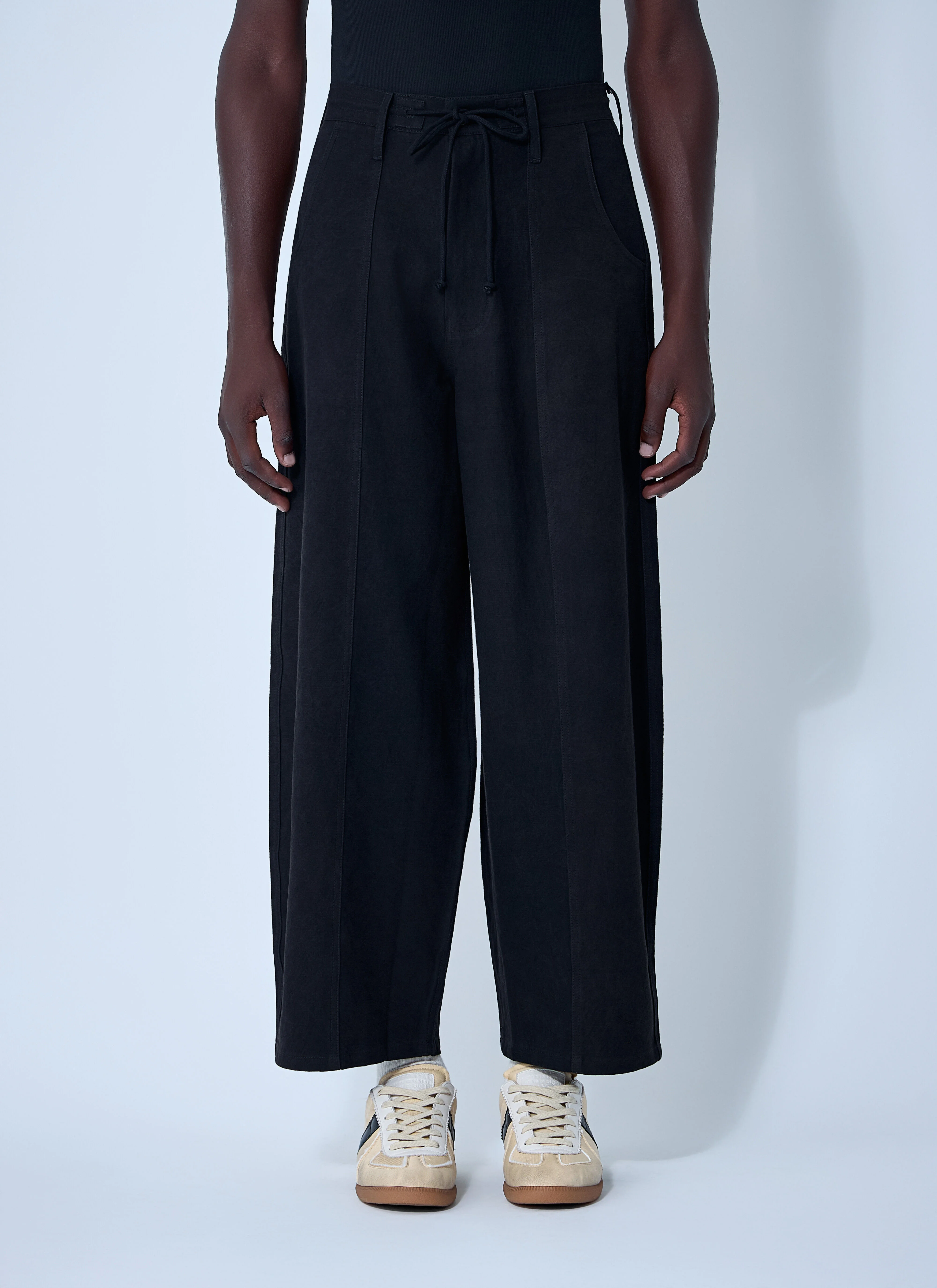 Straight-leg pants in cotton weave. - Mid-rise - Drawstring waistband - Belt loops - Side slip pockets - Rear patch pockets - 100% Cotton. Dry clean - Color: Black - Code: SPF25TRDOCCOTBLA