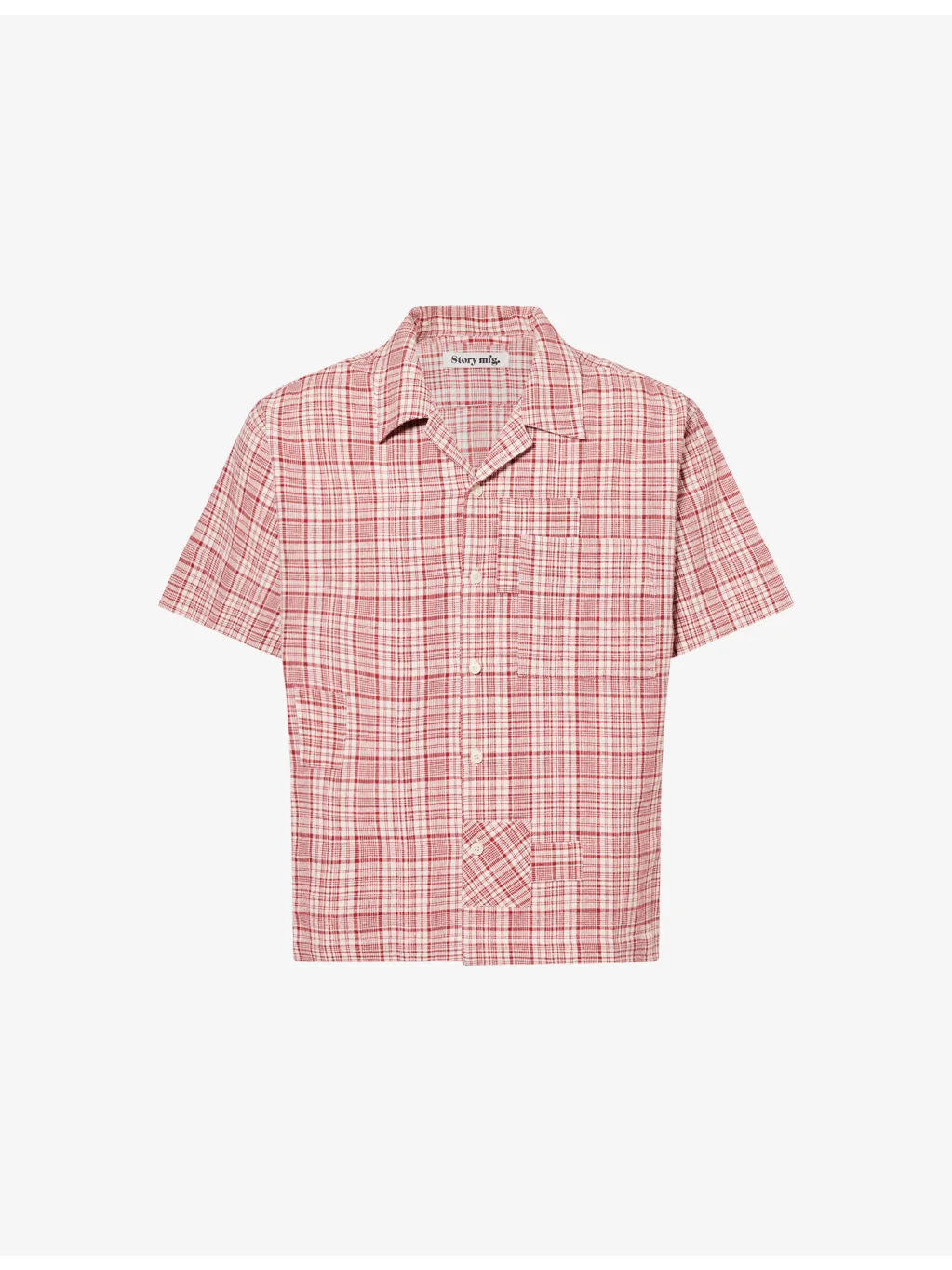 PRODUCT DETAILS - Story mfg. cotton-knit shirt - 100% cotton - Exposed button fastening at front - Spread collar - Closed cuffs - Relaxed fit, collar, short sleeves, patch pocket at front, straight yoke at back, all-over check print - Machine wash at 30°C - Made in India - Size medium: length 26in / 67cm, chest 48in / 122cm - Model is 6ft 2in/1.88m and wears a size medium - Lightweight, stretchy Ref: R04504771