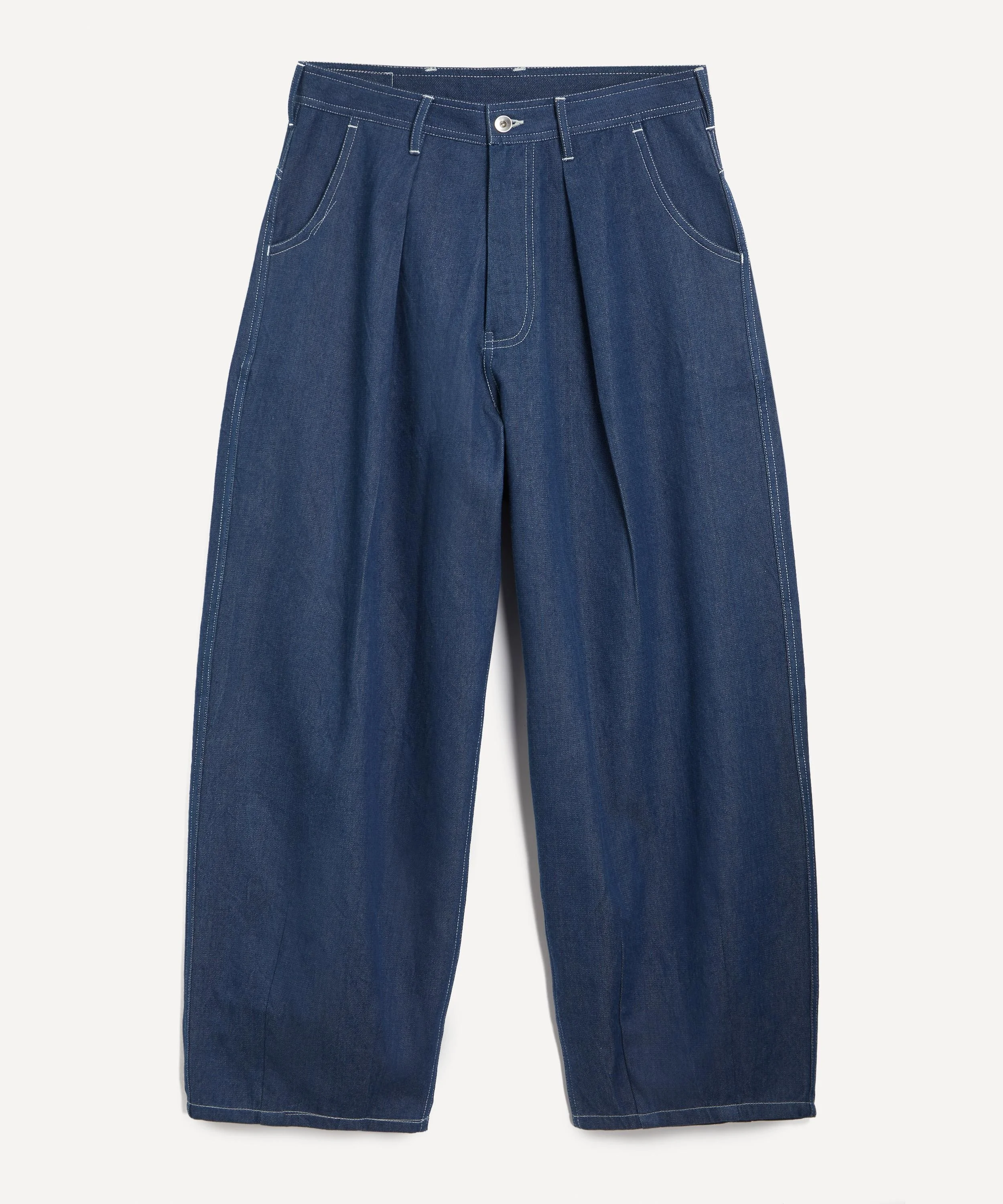 DETAILS Cotton denim jeans Naturally dyed by hand Easy fit Tapered hem Zip fly Belt loops Four pockets Contrast ecru topstitching SIZE & FIT Model is 186cm/6'1"; Chest: 92cm; Waist: 71cm and wears a size M COMPOSITION & CARE 100% Cotton Hand wash with pH neutral soap. Air dry