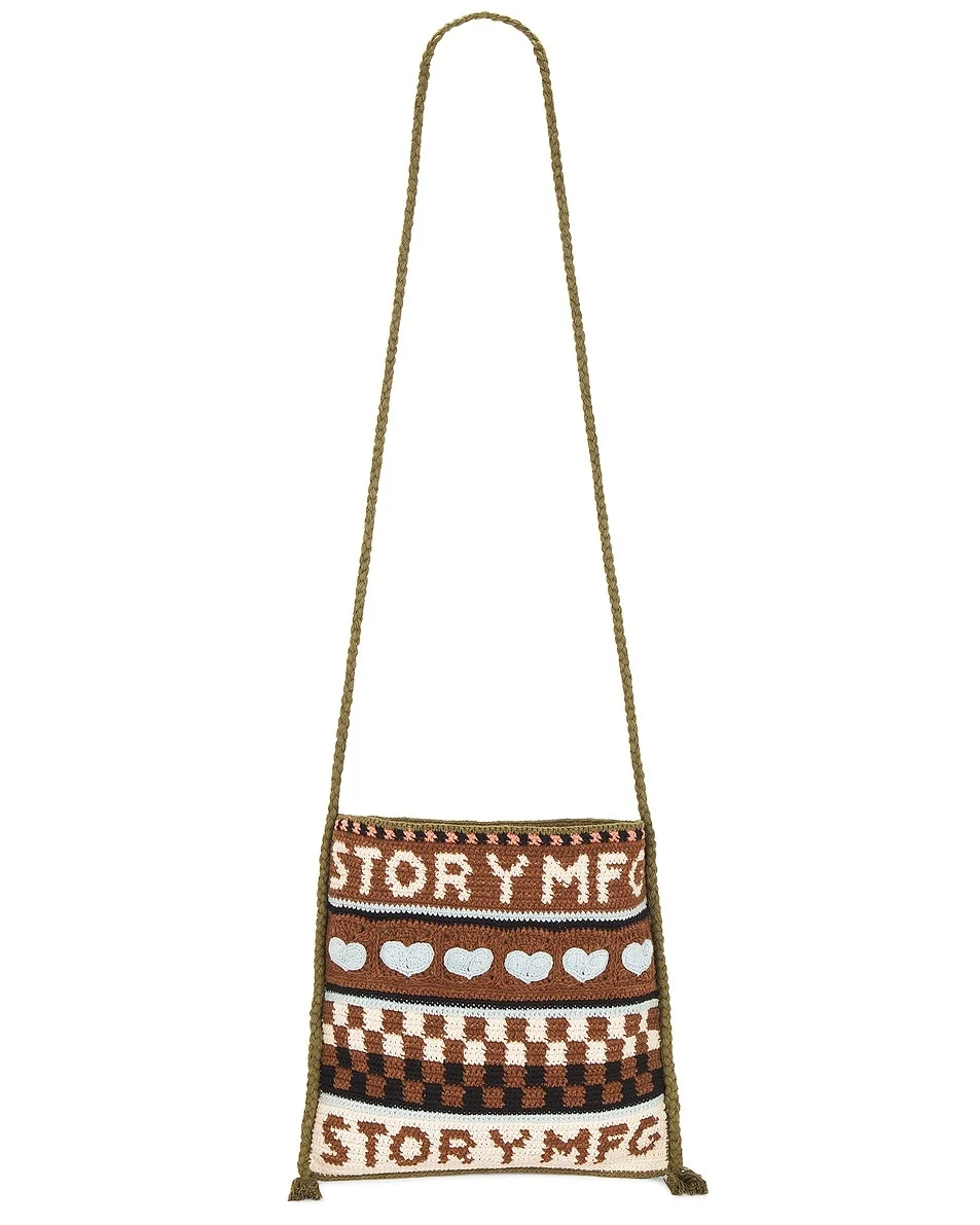 Details - Unlined crochet knit fabric - Made in India - Open top - One main compartment - Measures approx 30 cm W x 29 cm H x 1 cm D - Shoulder strap with a 62 cm drop - Our Style No. SMFF-MY3 - Manufacturer Style No. SAW24ACSTAHANLIH
