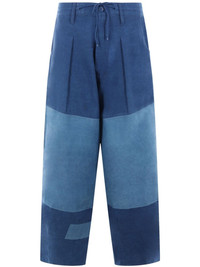 panelled wide-leg trousers Highlights - Blue - Organic cotton - Panelled design - Mid-rise - Wide leg - Drawstring hem - Front button and zip fastening - Belt loops - Slip pockets to the sides - Two rear patch pockets - Strap detailing Imported Composition Organic Cotton 100%