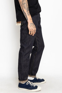 - The fully organically grown fox cotton revived in 1989 by the American entomologist Sally Fox is used for the yarn. Fox cotton has the true color of the plant itself before it turns white for human convenience. - Made by Japan's first shuttle loom "G3", which has been handed down as a legend. By mastering the G3 loom that is difficult to handle and poor production efficiency, Studio D'Artisan created rugged denim as a workwear of the old time - Relax Tapered Fit - 14oz SDA Original Japanese Selvedge denim - Indigo rope dyed - Plain pocket oversea version - One Wash - Made In Japan - Model is 6'3 wearing a size 34