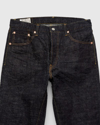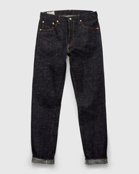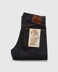 Woven on original Toyoda GL3 power looms from the early 50's, Studio D'artisan's new GL3 fabric captures the essence of vintage workwear. While the loom can only weave 5 meters of fabric per hour, it creates a unique and uneven roughness which cannot be replicated by any other machine. Using thick rope-like cotton yarns, SDA repeatedly dips the yarn in indigo to achieve the darkest possible color. The denim has been given a one-wash rinse treatment to eliminate shrinkage, leaving them ready to be worn right away, no soaking required. - 15oz selvedge denim from the original 1950's GL3 Toyoda shuttle loom - Rinsed to remove shrinkage - Relaxed Tapered fit: Medium rise, roomy top block, and strong taper from thigh down - Rope dyed indigo warp, white weft - Custom leather patch with signature pigs logo - Hidden coin pocket selvedge - Custom branded copper rivets - Button fly with full nickel buttons - Hidden back pocket rivets - Raised belt loops - Chain stitched hems - White and red selvedge - 100% cotton - Made in Japan