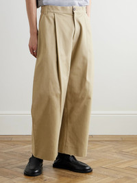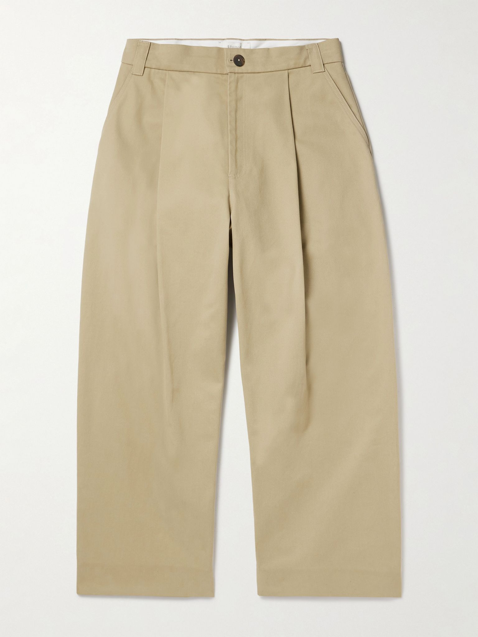 Sorte Wide-Leg Pleated Cotton-Twill Trousers Beige