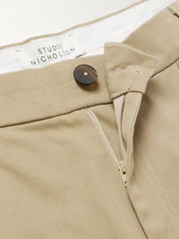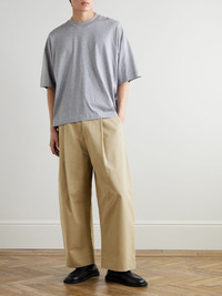 Studio Nicholson has a four-part checklist for every pair of trousers – 'fabrication, volume, leg shape and daily purpose'. This 'Sorte' style is made from an unstructured cotton-twill and cut to exaggerated proportions, with deep pleats through the front. Wear them with chunky shoes – think boots or moccasins – to balance out the shape. Size & Fit - Fits true to size. Take your normal size - Wide leg, low-crotch style - Mid-weight, non-stretchy fabric - Model is shown wearing a M - Model measures: waist size 32, height 6'3"/ 191cm Details & Care - Beige cotton-twill - Button and zip fastening - 100% cotton - Designer colour: Tan