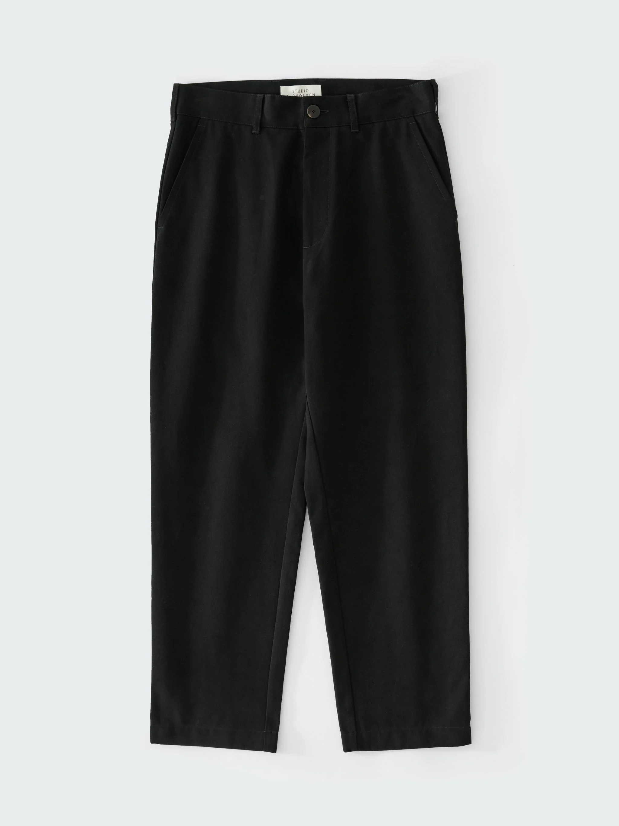 High-waisted flat front pant made from our signature Italian peached cotton. Details: - Straight leg construction - Two hand pockets and two rear patch pockets - Concealed zip fly with rubberised button closure - Internal jigger button - Belt loops Silas is 6'2" / 188cm and wears a size M DETAILS & CARE 100% Cotton Wash at 30°C / Dry Clean