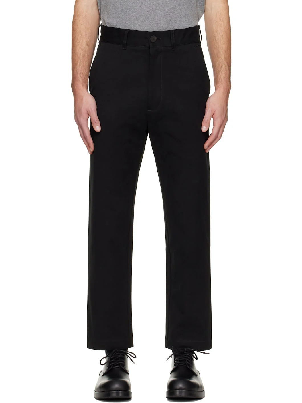 Peached cotton twill trousers. · Straight-leg · High-rise · Belt loops · Four-pocket styling · Zip fly Supplier color: Black 100% cotton. Made in Romania 252608M191020