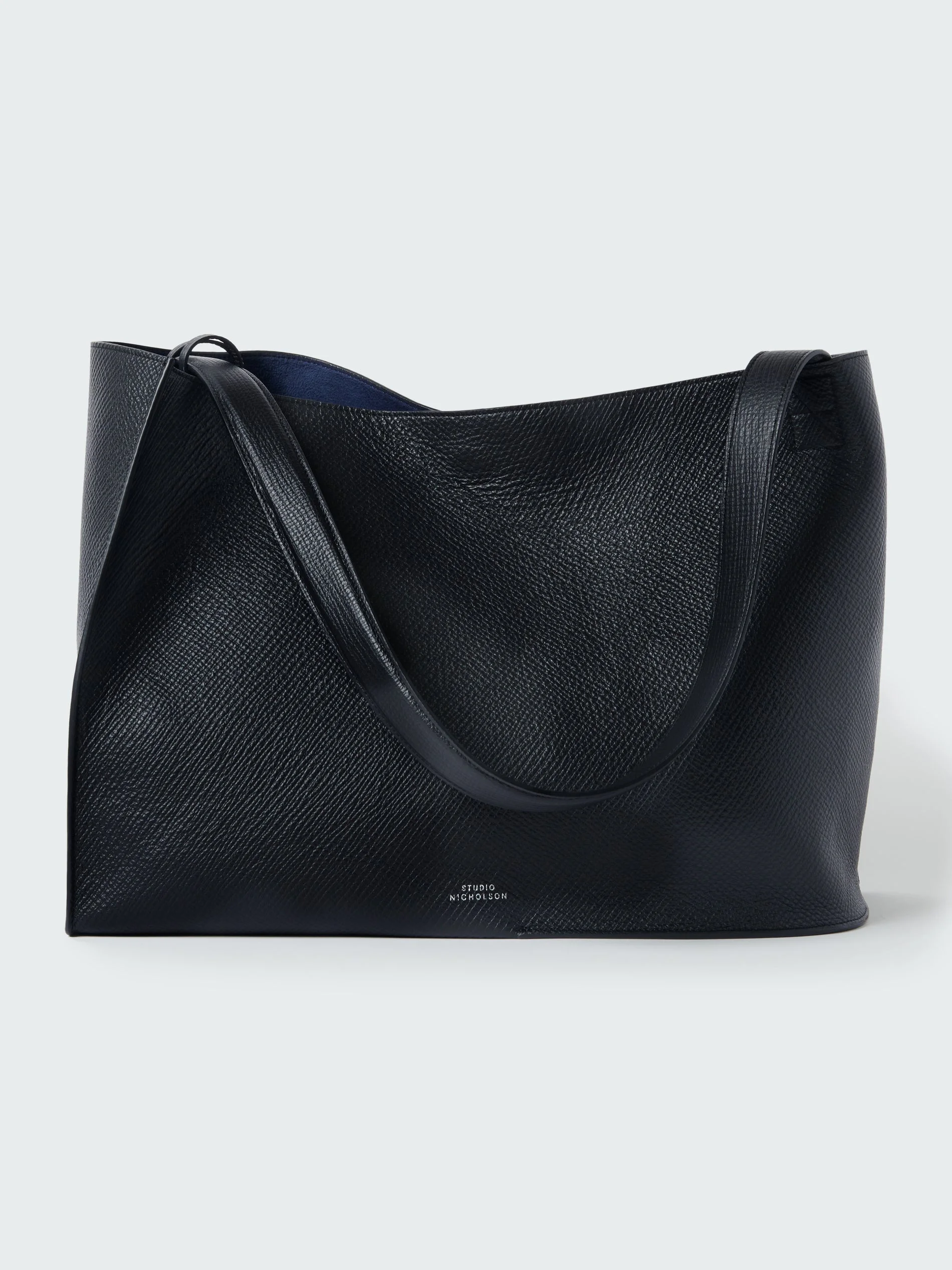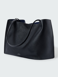 Combining perpendicular lines with the curved, this extra-large tote is constructed from Italian leather with just two corner seams and one shoulder strap, creating volume and a silhouette reminiscent of an unstructured shoulder or sleeve. The fixed strap is secured on opposite corners permitting the bag to slouch when worn. This tote fits comfortably under the arm falling to the wearer's fingertips. DETAILS - Includes detachable zipped pochette - 100% grained calf leather - Made in Italy - Microfiber lining - W: 440mm x H: 320mm x D: 185 mm - Handle depth: 290mm