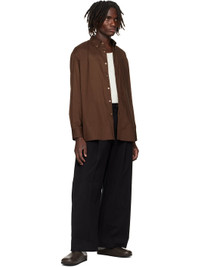 Peached cotton twill trousers. · Wide-leg · High-rise · Belt loops · Four-pocket styling · Zip fly · Pleats at front Supplier color: Black 100% cotton. Made in Portugal 252608M191004