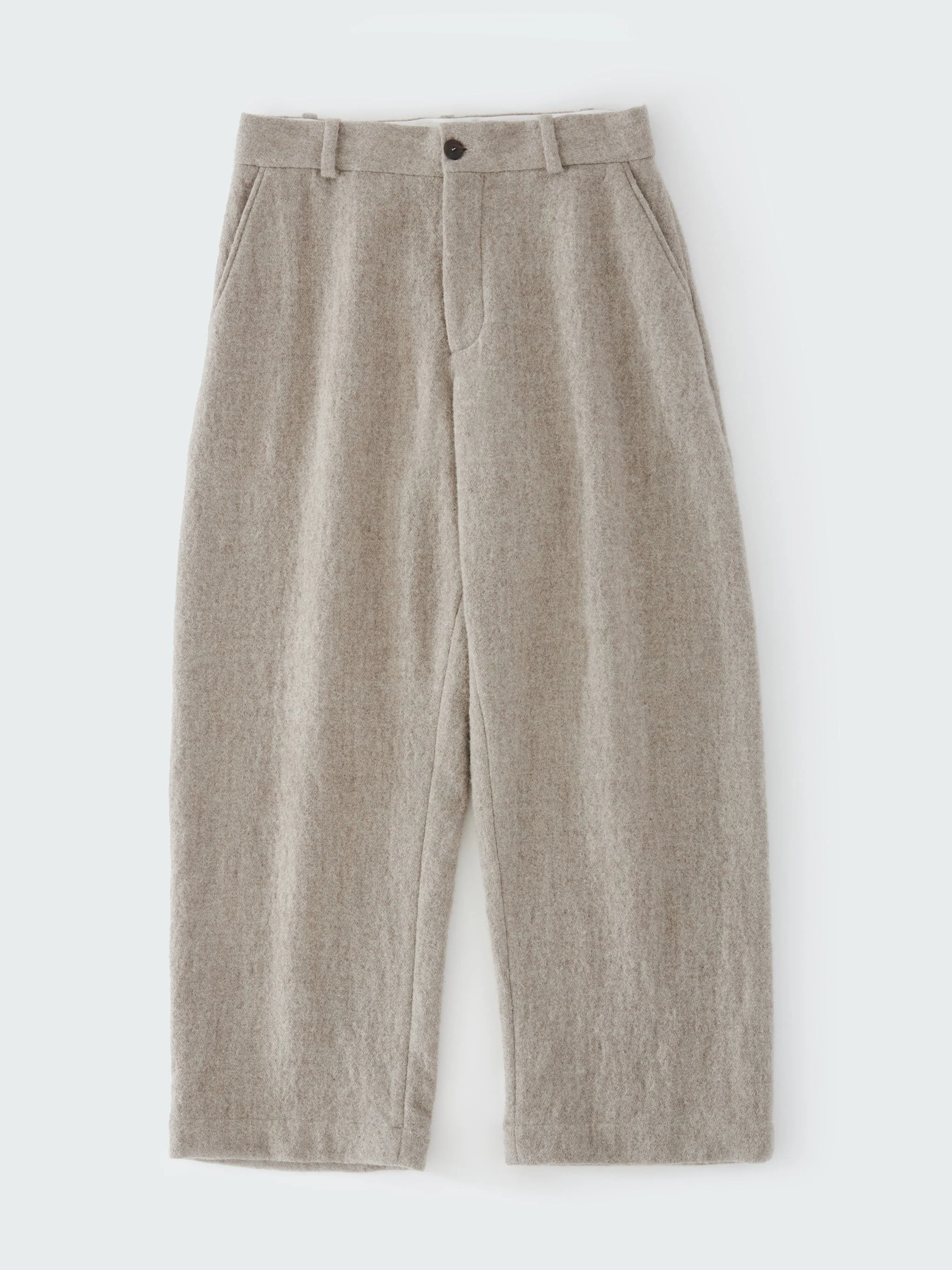 A tactile interpretation of traditional tailoring, the mid-rise Bosworth pant is rendered to a gently voluminous leg with a smart flat front. They’re cut from an Italian-sourced high-twist worsted virgin wool that’s twill-woven and then felted, resulting in a lofty, more textured finish. DETAILS - Mid-rise flat front - Belt loops - Zip fly with button closure - Slanted side pockets and two rear buttoned welt pockets - Internal jigger button - Wear it with the matching Deck ShirtTheodor is 6'2" / 188 cms and wears a Medium CARE Main Fabric: 100% Virgin Wool Lining: 51% Viscose 49% Cotton Dry Clean Only Made in Portugal