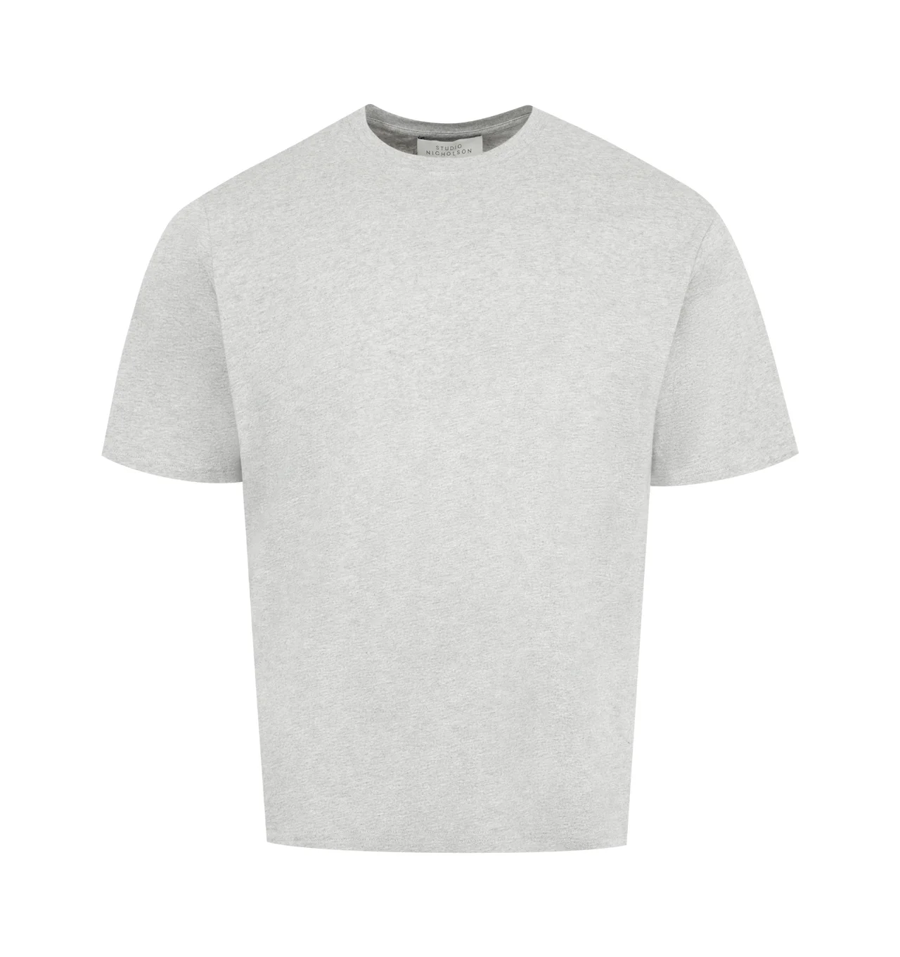 Studio Nicholson Regular fit tee-shirt in a fluid cotton jersey fabrication featuring ribbed crew neck and screen-printed branded logo at the nape. 100% cotton. Made in Portugal. DESIGNER STYLE ID: 1326 COLOR: GREY MARL