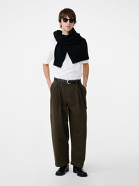 Studio Nicholson leans into classic tailoring to enhance utilitarian, carpenter-style jeans with Bridges. They’re crafted from 13oz garment-dyed denim – chosen for its soft, vintage finish – and fitted with single reverse pleats, neatly accentuating the gentle curve in the leg. DETAILS - Back buckle detail - Hammer loop - Carpenter pockets - 13oz garment-dyed denim Eliseu is 6'1.5'' / 186 cms and wears a size Medium CARE 100% Cotton Wash at 30°C | Cool Iron