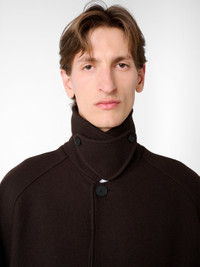 An easy-to-style outerwear staple, Cabo is a modern interpretation of traditional tailored overcoats. It’s crafted from our melton wool fabric – a dense, felted cloth with a brushed surface and a hard-wearing finish that lends itself to winter weather. It’s cut to a straight silhouette with raglan sleeves, a concealed placket and a back vent. Cabo has a buttoned throat latch for further protection from the elements. DETAILS - Detachable throat latch - Raglan sleeves - Two front pockets - Adjustable sleeve cuff tabs - Back ventTheodor is 6'2" / 188 cms and wears a Medium CARE Main Fabric: 80% Wool 20% Polyamide Lining: 51% Viscose 49% Cotton Dry Clean Only Made in Portugal
