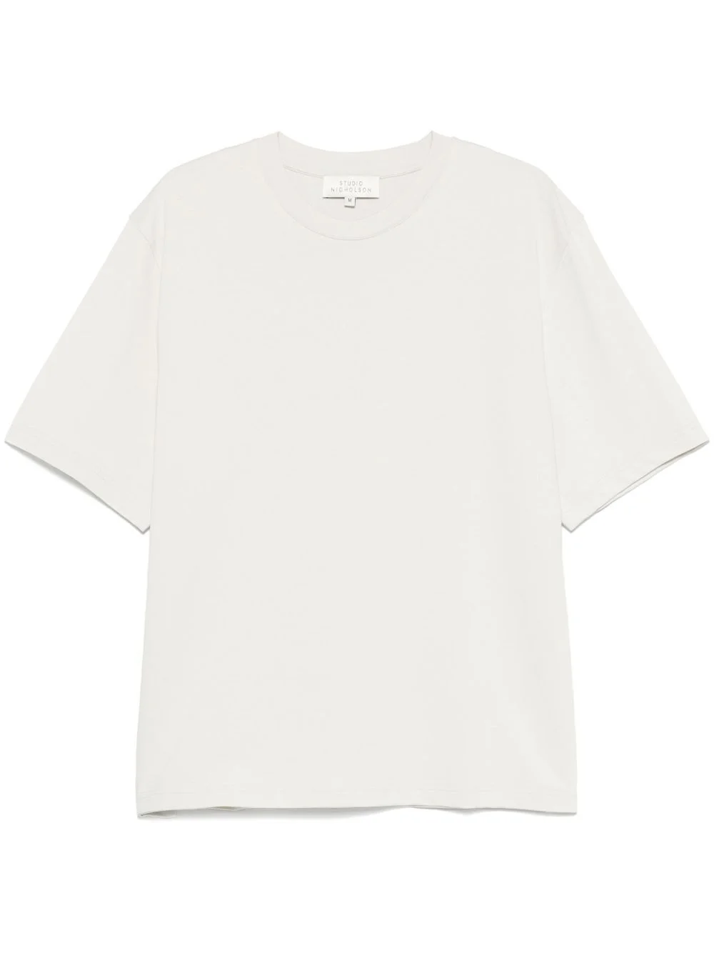 cotton T-shirt Highlights - Light grey - Crew neck - Drop shoulder - Short sleeves Imported Composition Cotton 100% SIZE & FIT FittingInformation Designed to be unstructured, offering a loose fit throughout Made from a midweight non-stretch fabric, this piece offers minimal elasticity when worn