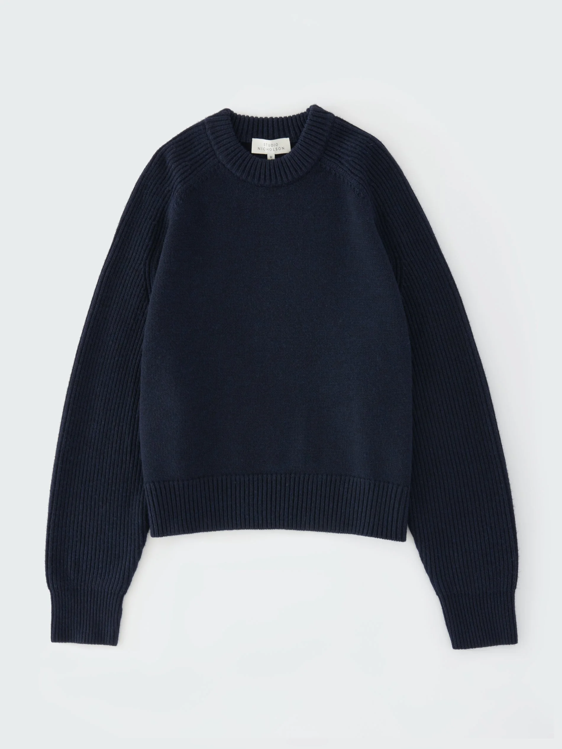 A take on our Level knit, this Jean jumper reworks the style with a crew neck and thumb holes for a more functional note. It’s crafted from merino wool that is soft to the touch yet dense in texture and has a fisherman’s rib accenting the raglan sleeves — a nod to traditional Aran styles. DETAILS - Crew neck - Raglan sleeves - Fisherman’s rib detail - Thumb holes - Cut from soft merino wool CARE 100% Merino Wool Dry Clean | Hand Wash
