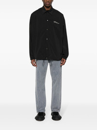 logo-print press-stud jacket Highlights - Charcoal - Textured finish - Classic collar - Drop shoulder - Long sleeves - Elasticated cuffs - Logo print at the chest - Two side inset pockets - Internal locker loop - Internal logo tag - Drawstring hem - Front press-stud fastening Imported Composition Nylon 62%, Cotton 36%, Elastane 2% SIZE & FIT Model measurements Height 6 ft 0 in(1.84 m) Bust/Chest 34.64 in(88 cm) Hips 35.03 in(89 cm) Waist 27.95 in(71 cm) FittingInformation Designed to be unstructured, offering a loose fit throughout The internal drawstring at the hem allows for fitted preferences Made from a lightweight non-stretch fabric This piece fits true to size – take your usual size