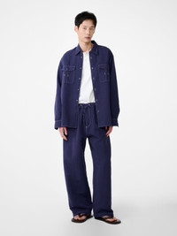 Louro takes the classic utility shirt silhouette and affords it an easy, luxurious feel through its fabrication. It’s crafted from our twill fabric that’s woven in a breathable cotton-linen blend, then garment-dyed to give a rich, lived-in look unique to each garment. It’s finished with contrast topstitching that picks out the subtle, workwear-inspired pocket details. DETAILS - Point collar - Chest pockets - Buttoned cuffs - Curved hem - Wear it with the matching Sonny Pant Wang is 6'2'' / 187 cms and wears a size MediumQing is 5'10''/ 177 cms and wears a size Small CARE 54% Cotton 46% Linen Delicate Wash at 30°C | Cool Iron Made in Portugal