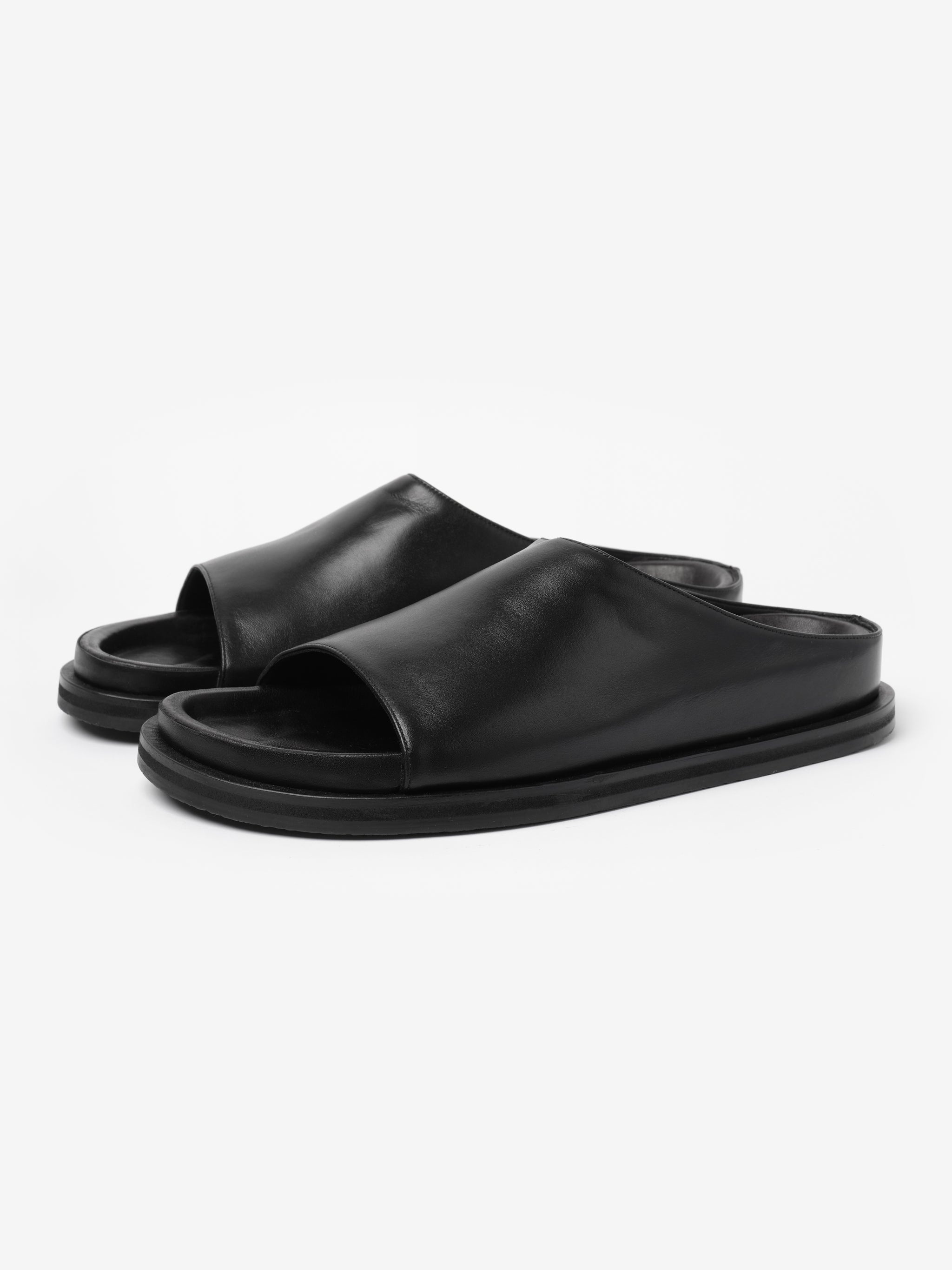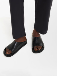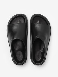 Like an elevated version of a shower slide, Spring is simple but meticulously designed. The upper is made from a sleek calf leather, which also covers the moulded footbed. A cushioned EVA sole is wrapped with an extended leather welt. - Open toe - Ergonomic-style shape - Italian leather DETAILS & CARE 100% Leather Remove Dirt Or Marks With A Clean Cloth Use A Neutral Polish Made in Portugal