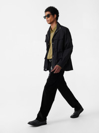 Studio Nicholson leans into classic field jacket silhouettes to create the Vista. It’s cut from our ‘typewriter’ cotton – a Japanese fabric chosen for its soft papery texture and the gentle rustling sound as it moves with the body. The jacket is crafted with dolman sleeves, four generous flap pockets and an elasticated drawcord waist that creates a relaxed, blouson fit. DETAILS - Stand collar - Four flap pockets - Elasticated drawcord waist - Adjustable buttoned cuffs - Wear it with the matching Trow PantDarron is 6'1" / 185 cms and wears a size Medium CARE 100% Cotton Do NOT Wash | Dry Clean Only