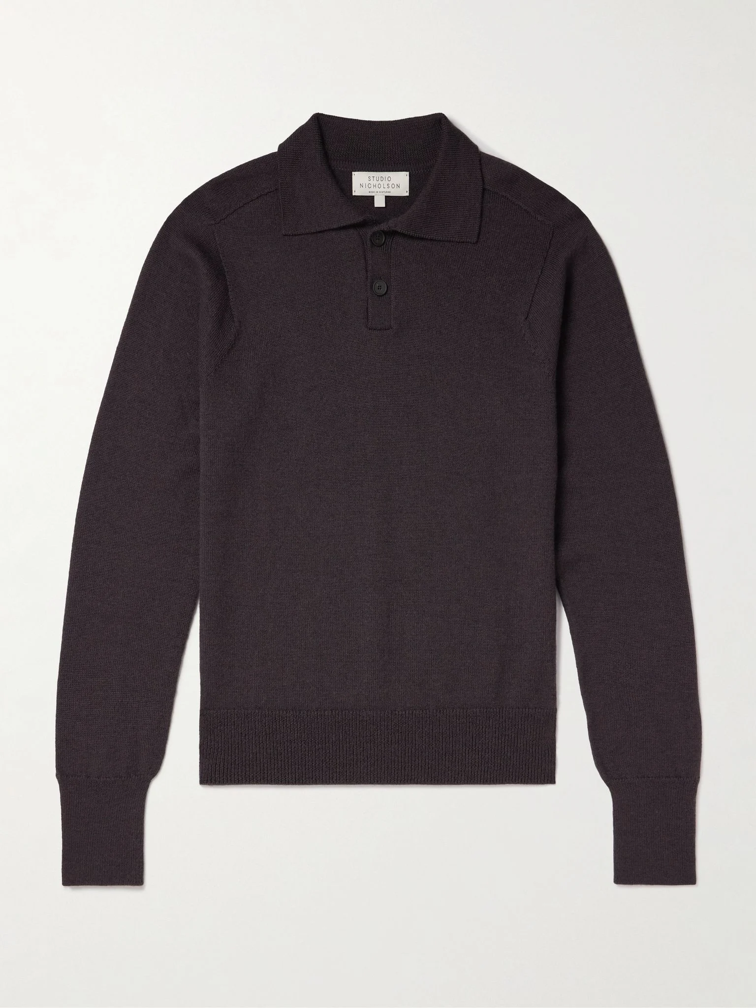 Studio Nicholson's polo shirt is knitted from merino wool, which is temperature-regulating and exceptionally soft. It has a neat collar and wide ribbed trims for a cool slouch through the waistband and cuffs. Size & Fit - Fits true to size. Take your normal size - Designed for a relaxed fit - Mid-weight knit - Model is shown wearing a M - Model measures: chest 38"/ 96cm, height 6'3"/ 191cm Details & Care - Brown merino wool - Button fastenings - 100% merino wool - Dry clean - Designer colour: Walnut