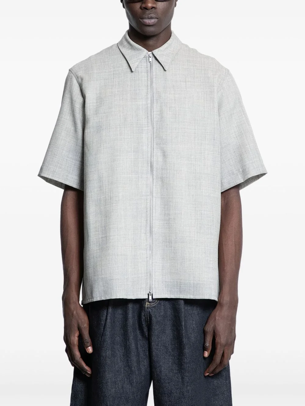zip method shirt Highlights - Grey - Wool - Zip fastening - Short sleeves - Classic collar Imported Composition Wool 100% SIZE & FIT FittingInformation Designed to be unstructured, offering a loose fit throughout Made from a midweight non-stretch fabric Washing instructions Read Manufacturer Guidelines