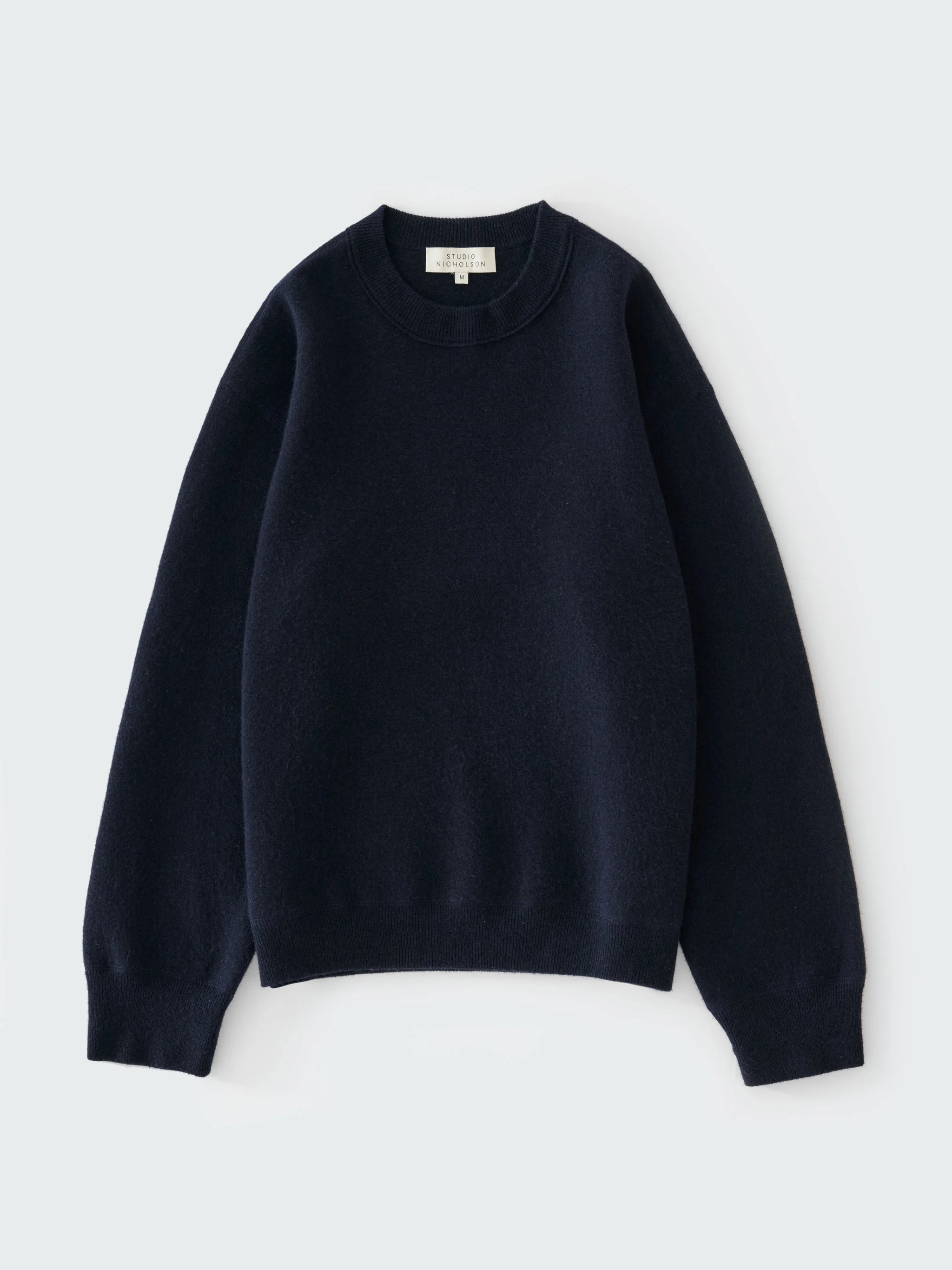 Studio Nicholson’s signature balance of exacting craftsmanship and quality materials underpins this Moray jumper. It’s meticulously shaped from our double cashmere fabric which is made from a blend of wool yarns and cashmere we’ve chosen for its luxurious, extra-soft handle. Moray showcases a 12-gauge knit: a classic, midweight construction with a refined finish that’s ideal for autumn/winter layering. DETAILS - Crew neck - Dropped shoulders - Ribbed trimsTheodor is 6'2" / 188 cms and wears a MediumLuana is 5'10" / 178 cms and wears a Small CARE 70% Wool 30% Cashmere Hand Wash & Dry Flat | Dry Clean