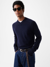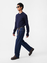 Studio Nicholson’s fabric-first ethos underpins the Inverness jumper. It’s knitted from an extrafine merino wool that’s noted for its pleasingly sumptuous handle. A pillar of any autumn/winter wardrobe, Inverness is shaped with a V-neckline and set-in sleeves that accentuate the casual feel. DETAILS - V-neckline - Set-in sleeves - Elongated cuffs - Ribbed trimsDarron is 6'1" / 185 cms and wears a size MediumNataly is 5'10" / 177 cms and wears a size Small CARE 100% Extrafine Merino Hand Wash | Dry Clean Made in Scotland