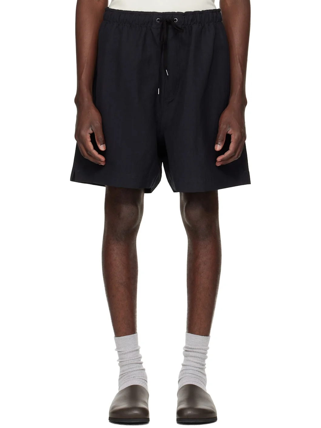Linen- and wool-blend twill shorts. · Drawstring at elasticized waistband · Three-pocket styling · Vented cuffs Supplier color: Darkest Navy 65% linen, 35% wool. Made in Portugal 252608M193001