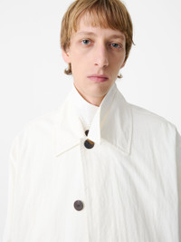 The Nevis coat is made from a Japanese cotton and nylon-blend twill that has a tactile surface and a crisp, ‘noisy’ hand feel. It’s cut to a long silhouette with a concealed buttoned placket, giving it a clean-lined look that’s further enhanced by the clever sleeve construction – set-in at the front, yet raglan at the back. DETAILS - Classic collar - Button front with concealed placket - Front slant pockets - Below the knee length - Wear it with the matching Howse PantJosefp is 6'2" / 187 cms and wears a size MediumXinyue is 5'11" / 180cms and wears a size Small CARE 55% Cotton 45% Nylon Do NOT Wash | Professionally Wet Clean Only