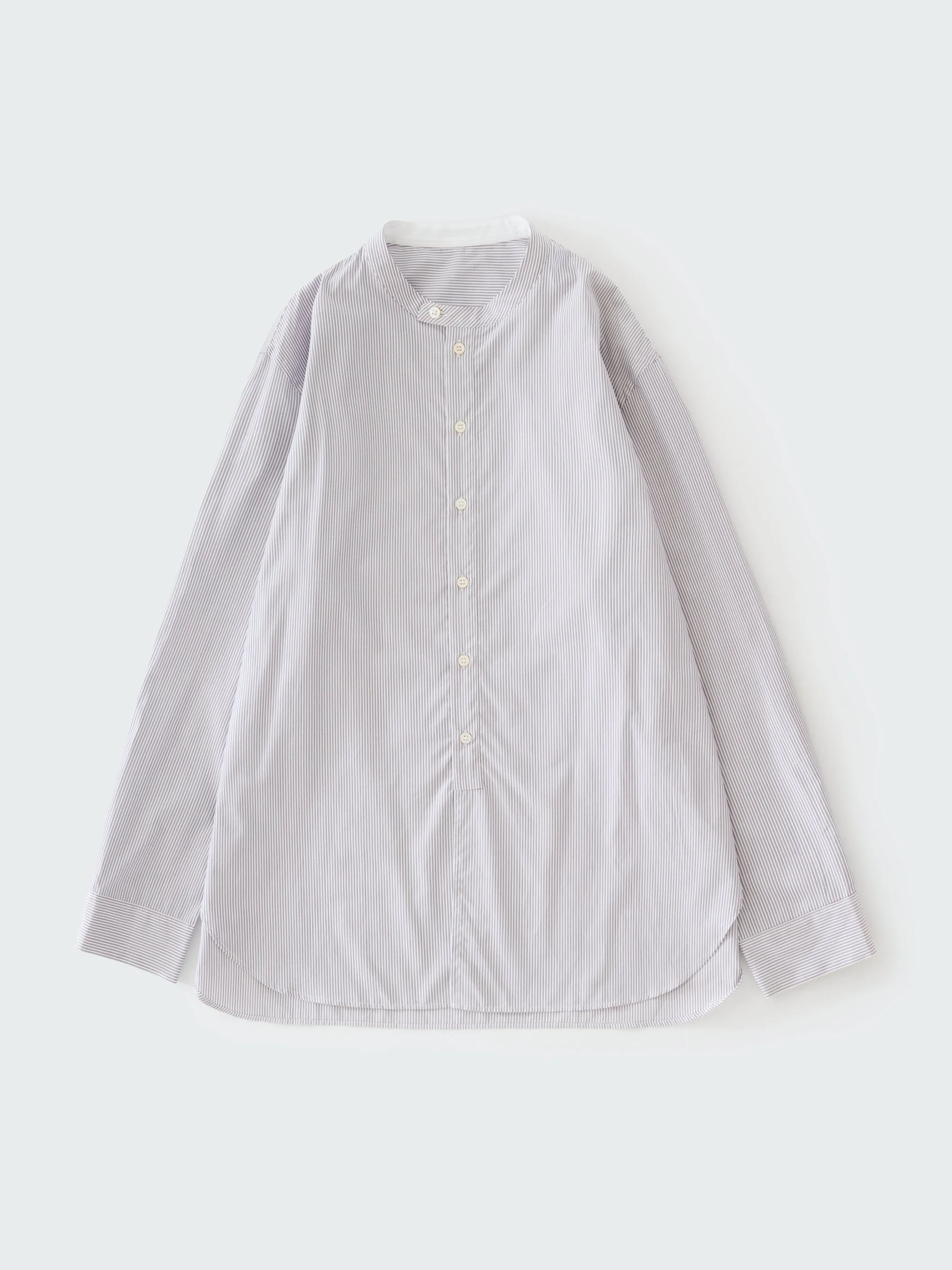 An indispensable layering staple, the Nick shirt is crafted as part of Studio Nicholson’s collaboration with Aaron Levine and taps into SN’s signature focus on fabric. It’s cut from narrow shadow stripe cotton that’s noted for its lightweight handle and satisfying slender stripes. Nick features a grandad collar and is constructed with a shirt tail hem and back pleats, amplifying the generous frame, and bringing a relaxed, low-key mood. DETAILS - Grandad collar - Buttoned cuffs - Back pleats - Shirt tail hemFinn is 6' 1½''/ 186.5 cms and wears a Medium CARE 100% Cotton Wash at 30°C | Do NOT Dry Clean Made in Portugal