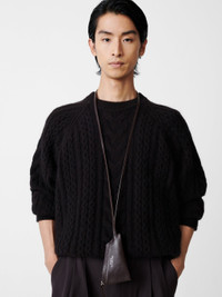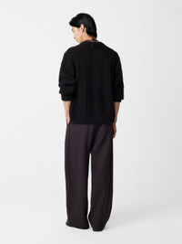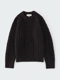 Our Norr jumper is a reimagining of classic Aran styles, crafted from fluffy mohair dyed in ‘Espresso Brown’ for Winter ‘24. This is evoked in the latticed cable-knit design and the slouchy fit, which allows it to be worn dressed up or casually. Bring on a clash of textures and style it with sleek wool tailoring and leather accessories. DETAILS - Ribbed neck, cuffs and hem - Cable-knit design - Soft mohair aran Yugo is 6'1" / 186cms and wears a Medium CARE 77% Wool 14% Mohair 9% Nylon Delicate Dry Clean Only Made in England