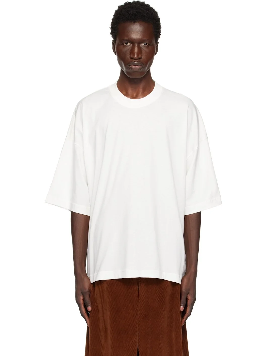 Cotton jersey T-shirt. · Rib-knit crewneck · Dropped shoulders · Logo printed at back collar Supplier color: Off white 100% cotton. Made in Turkey 251608M213000