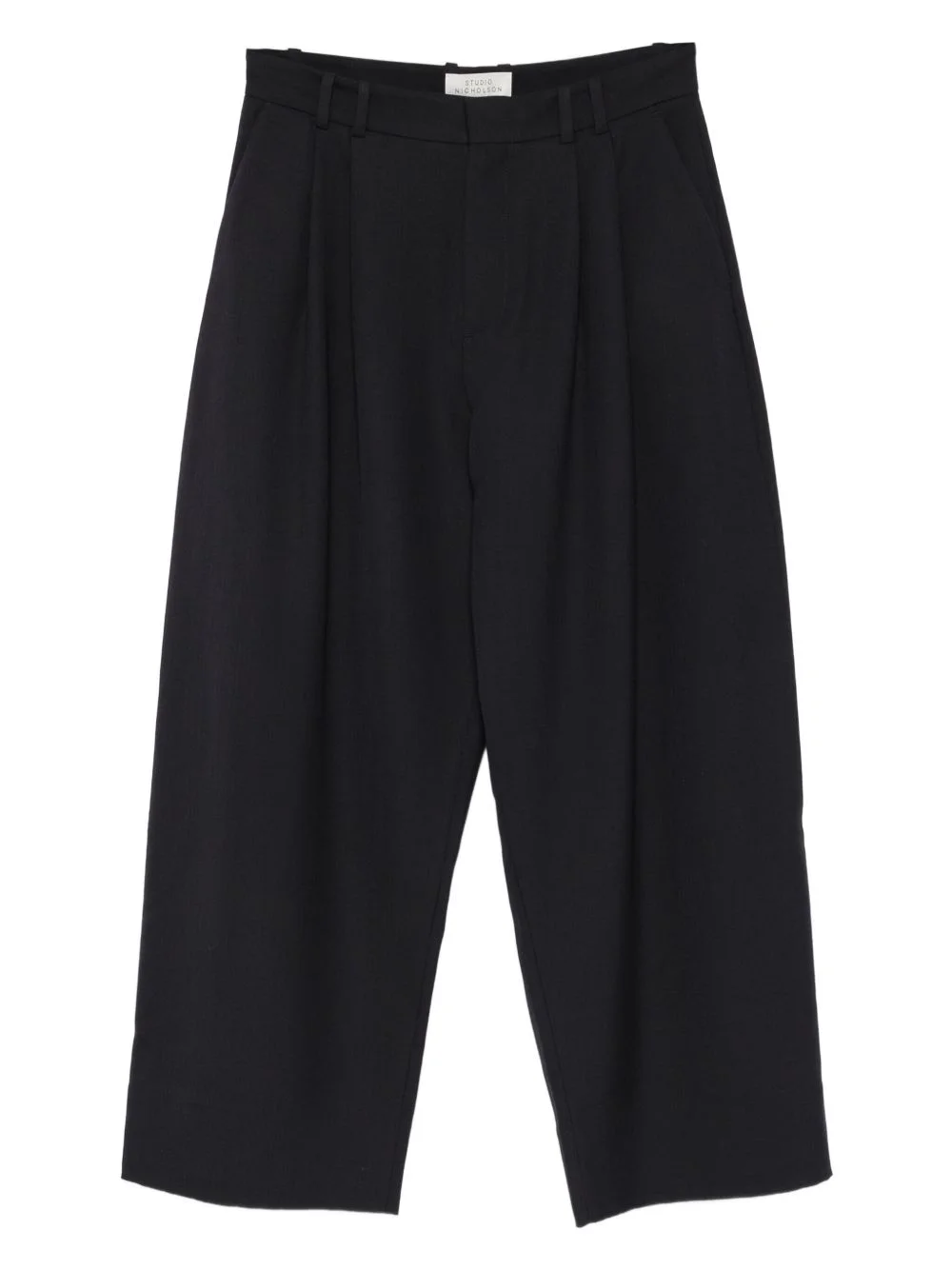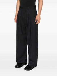 pleated trousers Highlights - Grey - Belted waist - Front pleats - Elasticated waistband - Side pockets Imported Composition Polyester 55%, Wool 45% SIZE & FIT Model measurements Height 6 ft 1 in(1.85 m) Bust/Chest 35.82 in(91 cm) Hips 37.79 in(96 cm) Waist 29.13 in(74 cm) FittingInformation Designed with a wide leg, offering a loose and roomy fit Made from a midweight non-stretch fabric Washing instructions Read Manufacturer Guidelines