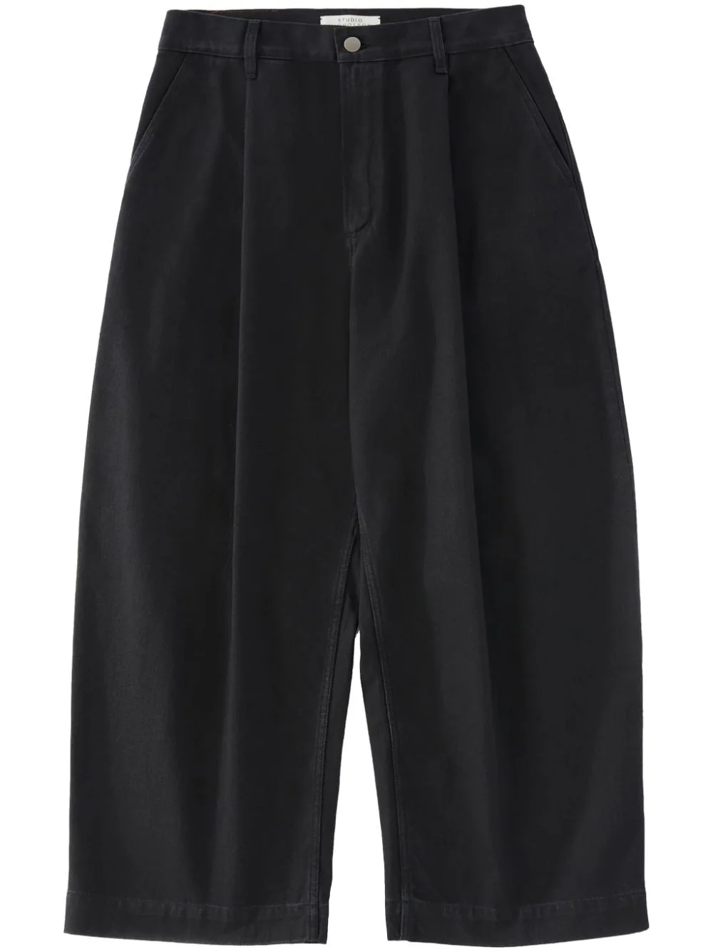 Puch trousers Highlights - Black - Zip fly fastening - Belt loops - Pleat detailing - Two diagonal pockets to the sides - Two rear patch pockets - Logo patch to the rear - Mid-rise - Wide leg Imported Composition Outer: Regenerative Cotton 52%, Cotton 48%