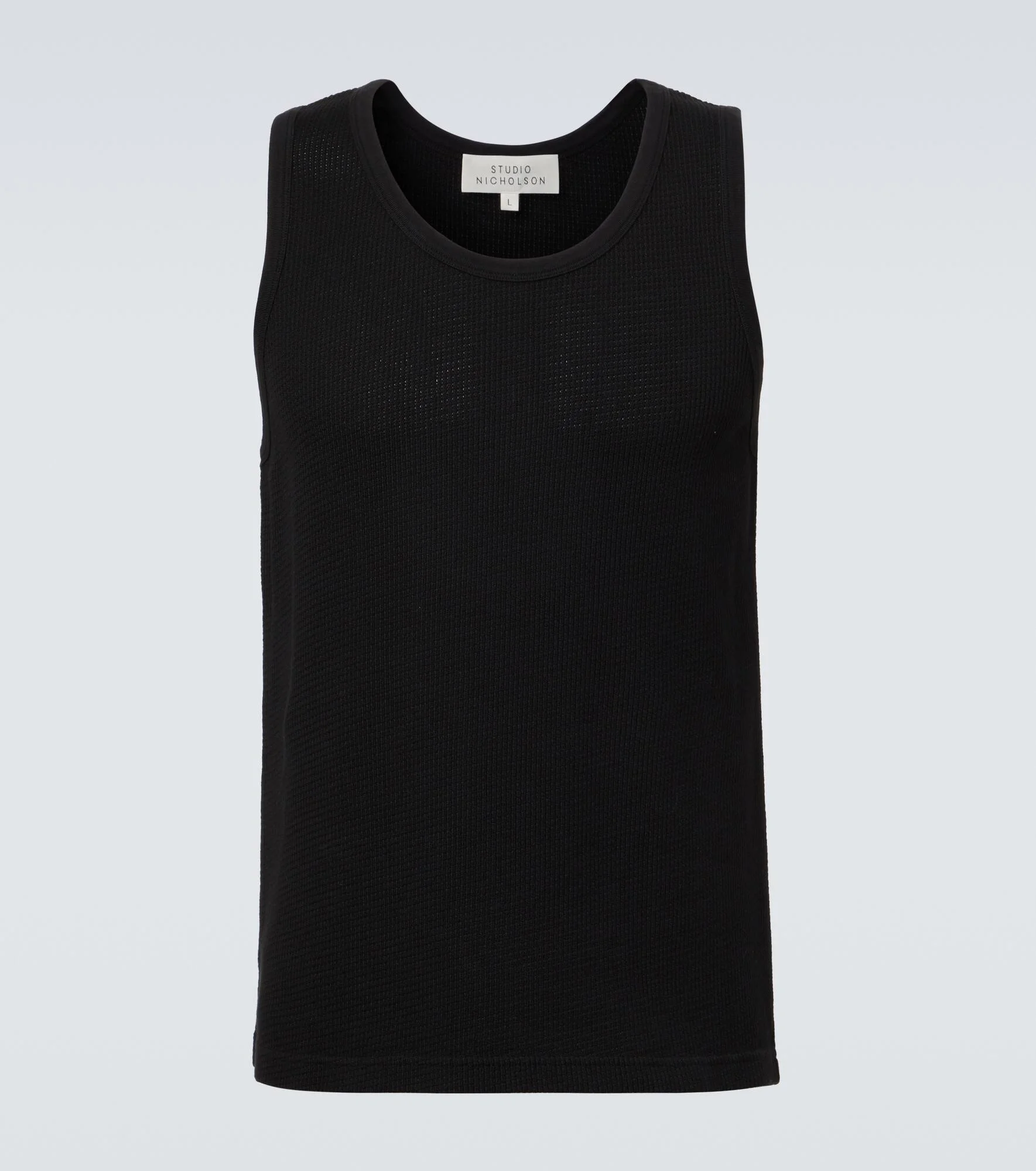 Founded in 2010 by British designer Nick Wakeman, Studio Nicholson combines precision with minimalist sensibilities. The Razim tank top is a classic design crafted from soft cotton jersey. Product Details - Material: 100% cotton - Care instructions: machine wash at 30 degrees - Made in Portugal - Color: black - Designer color name: Black - Item number: P01133526 Size & Fit - True to size - Straight fit - Stretchy fabric - Falls to the hip - The model in the picture is 185cm-6'1" and wearing a size L