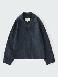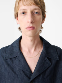 A camp collar overshirt cut from our indigo slub cotton: an Italian-milled cotton and linen blend woven from indigo-dyed yarns. Designed with a cropped and boxy fit, it features a concealed placket and a straight workwear-inspired hem. DETAILS - Boxy fit - Cropped length - Concealed placket - Convertible collar: can be fastened up to the neck by a concealed button - Wear it with the matching Elio Short or Levy PantJosefp is 6'2" / 187 cms and wears a Medium CARE 50% Cotton 50% Linen Delicate Wash at 30°C | Cool Iron Made in Portugal
