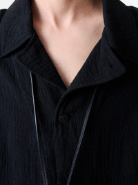 A camp collar overshirt cut from our heavy cotton crinkle: an Italian shrunk double linen woven with elements of cotton and celebrated for its textured handle. Designed with a cropped and boxy fit, it features a concealed placket and a straight workwear-inspired hem. DETAILS - Boxy fit - Cropped length - Concealed placket - Convertible collar: can be fastened up to the neck by a concealed button - Wear it with the matching Joshua ShortJosefp is 6'2" / 187 cms and wears a Medium CARE 99% Linen 1% Cotton Hand Wash | Dry Clean Made in Portugal