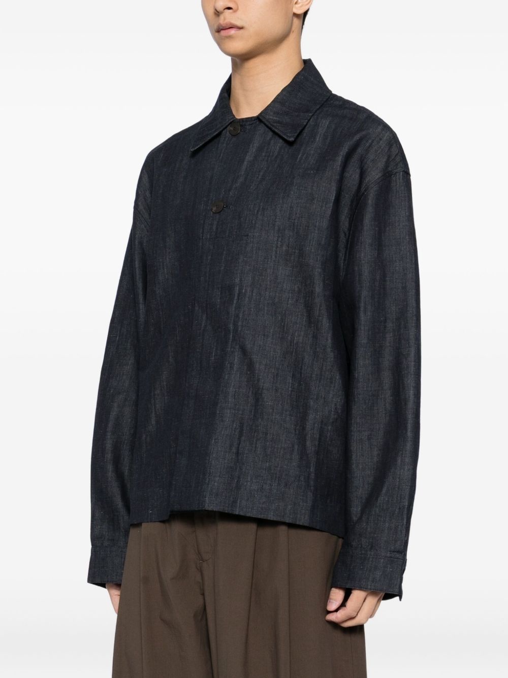 Rick jacket Highlights - Indigo blue - Front button fastening - Buttoned cuffs - Short side slits Imported SIZE & FIT Model measurements Height 6 ft 2 in(1.87 m) Bust/Chest 31.49 in(80 cm) Hips 37.79 in(96 cm) Waist 27.95 in(71 cm) FittingInformation Designed for a boxy fit, intended for a loose fit throughout Sturdy and hard-wearing, this denim piece offers no stretch