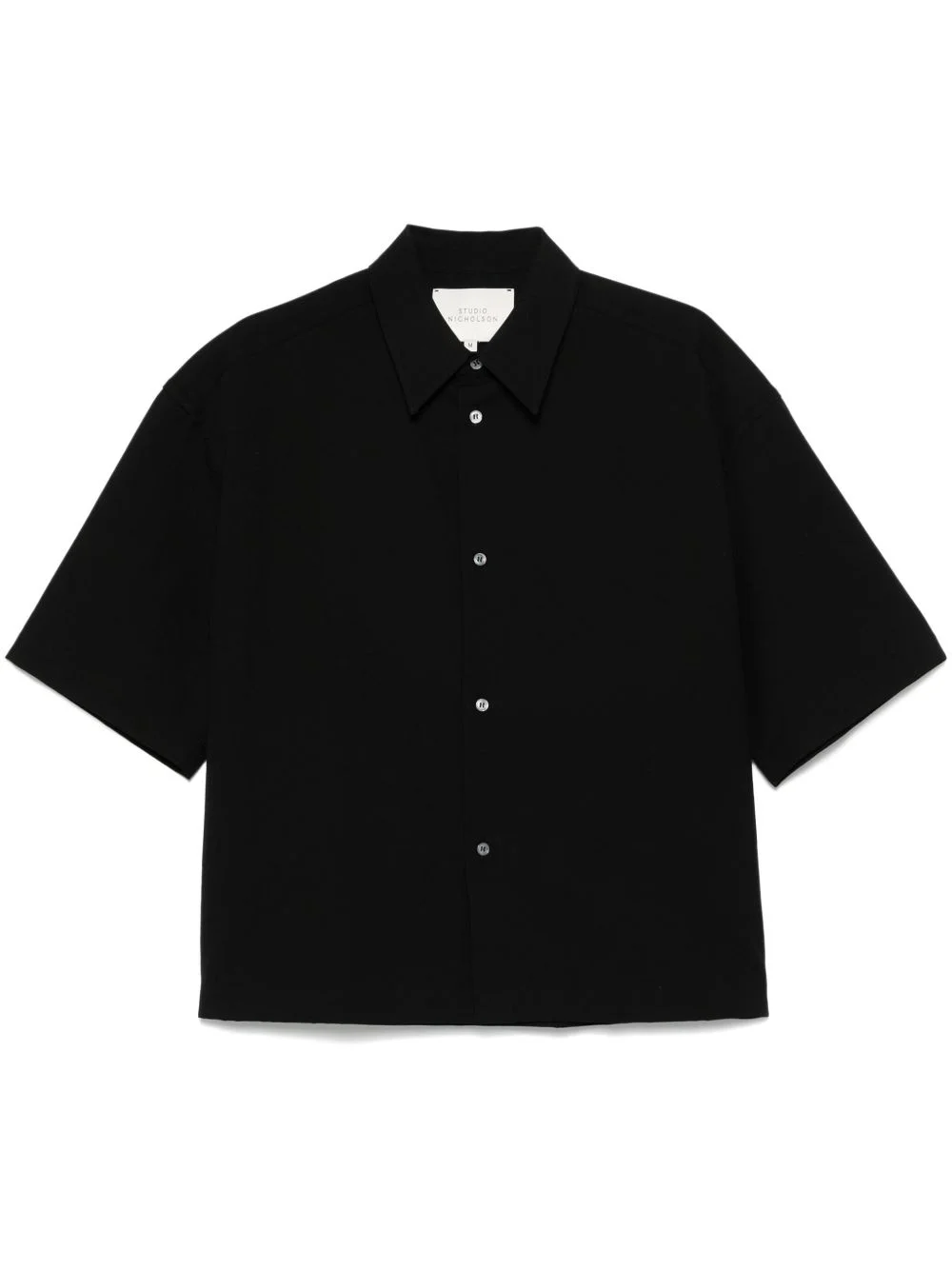 short-sleeve shirt Highlights - Black - Front button fastening - Straight-point collar - Drop shoulder Imported Composition Cotton 84%, Polyamide 16% SIZE & FIT Model measurements Height 6 ft 2 in(1.87 m) Bust/Chest 38.18 in(97 cm) Hips 36.61 in(93 cm) Waist 29.13 in(74 cm) FittingInformation Designed for an oversized fit, offering additional room throughout Made from a midweight non-stretch fabric