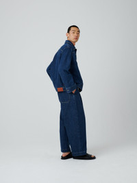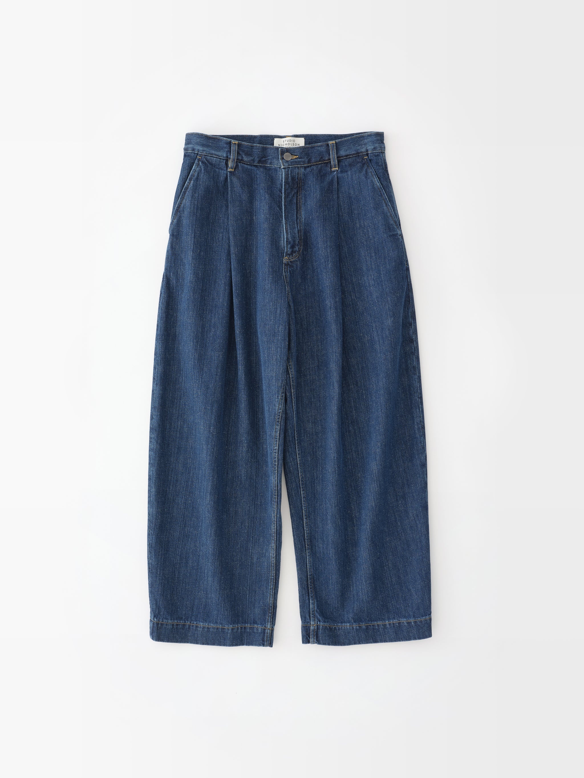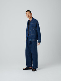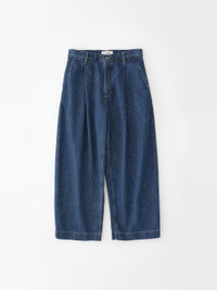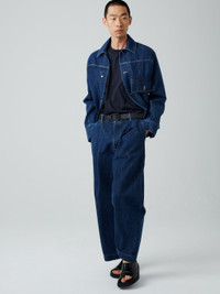 High-waisted denim pants made from a soft washed cotton. DETAILS High-waisted denim pants made from a soft washed cotton. Details: - Full-length volume leg construction- Concealed zip fly with metal button closure- Two front pockets and two rear patch pockets- Single front pleat- Branded leather patch on the rear waistband Zhuo is 6'1" / 186cm and wears a size M CARE 71% Cotton, 16% Reused Cotton, 13% Recycled Polyester Made in England Wash at 30°C