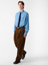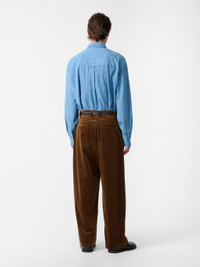 Part of Studio Nicholson’s collaboration with BEAMS Plus, the Lisa shirt is a tribute to traditional shirtmaking and an indispensable wardrobe pillar. Meticulously crafted in Japan, it’s cut from Okayama-sourced, yarn-dyed denim noted for its faded, washed-out finish. The shirt constructed with a classic button-down collar, side gussets and a box pleat yoke. Lisa’s oversized fit lends itself to relaxed seasonal layering. DETAILS - Button-down collar - Chest patch pocket - Buttoned cuffs - Curved hem - Rear box pleat and hanging loopTheodor is 6'2" / 188 cms and wears a Medium CARE 100% Cotton Delicate Wash at 30°C | Delicate Dry Clean Made in Japan