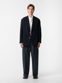 Studio Nicholson’s relaxed tailoring converges with BEAMS Plus’ signature neo-prep detailing to create the polished Paul blazer. Crafted as part of an 18-piece capsule collaboration and modelled on classic sports jackets, Paul is cut from a super high-density tropical wool sourced from the Bishu region of Japan. It’s fitted with generous oversized pockets and a three-button front that recalls styles prevalent in the 1960s. It’s finished with gold Americana-inspired buttons. DETAILS - Notch lapels - Oversized patch pockets - Back vent - Wear it with matching Alvy PantTheodor is 6'2" / 188 cms and wears a Medium CARE Main: 100% Wool Lining: 100% Cupro Delicate Dry Clean Made in Japan