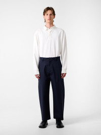 The Tay pants are crafted as part of Studio Nicholson’s collaboration with Mackintosh. They’re handmade in Scotland by a single artisan and cut from Mackintosh’s signature rubberised bonded cotton: a fabric that’s defined by its coated finish and engineered to amplify the cotton’s natural properties, making it water-resistant and more durable. Shaped with a gentle curve in the leg, Tay is punctuated with subtle nods to classic workwear and features a thigh jet pocket and a pair of reach patch pockets. DETAILS - Button and zip fly - Slant pockets - Rear patch pockets - Thigh jet pocket - Curved leg pant - Note that it should be hung in a cool airy place to dry it or when not in use.Theodor is 6'2" / 188 cms and wears a MediumLuana is 5'10" / 178 cms and wears a Small CARE 100% Cotton Made in Englad Do NOT dry Clean & Do NOT Machine Wash Small stains can be removed with soap and water with soft brush only, Note that never use spirit or other chemical cleaners.