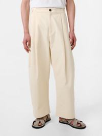 High-waisted volume pant made from our signature Italian peached cotton. DETAILS - High waisted - Single front pleat - Zip fly with rubberised button closure - Slanted side pockets and two rear patch pockets - Internal jigger button - Belt loops Zhuo is 6'1" / 186 cms and wears a size Medium CARE 100% Cotton Wash at 30°C | Dry Clean Made in Portugal