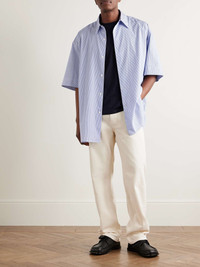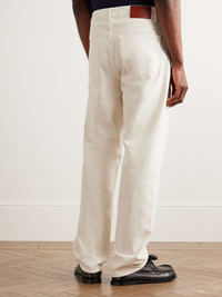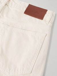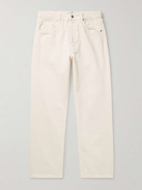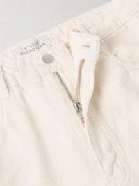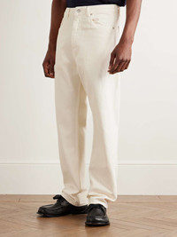 Studio Nicholson's 'Riso' jeans are inspired by '90s snapshots of actors leaving The Viper Room in Los Angeles. Made from denim that's washed for a pre-worn look, they have a classic five-pocket construction and a straight-leg fit. Take styling cues from the era and wear yours with a leather jacket. Size & Fit - Fits true to size, however those who are between sizes should take the smaller size - Relaxed-straight leg, low-crotch style - Mid-weight, non-stretchy fabric - Model is shown wearing a S - Model measures: waist size 32, height 6'1"/ 185cm Details & Care - Ivory denim - Button and zip fastening - 100% cotton - Machine wash - Designer wash: Parchment