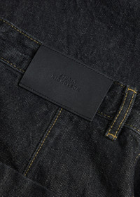 Info & Care Studio Nicholson denim jeans; Mid-rise fit, cropped, wide-leg cut, belt loops, pleats at waist, side slip pockets, back patch pockets, leather designer plaque, washed finish Partially concealed button and zip fastening at front Designer wash: Denim Black 100% organic cotton Machine wash cold inside out to avoid colour transfer Size & Fit Front rise: 14.5 inches/ 37cm Inside leg length: 26 inches/ 66cm Midweight Model is 6'1"/ 185cm and wears a size medium